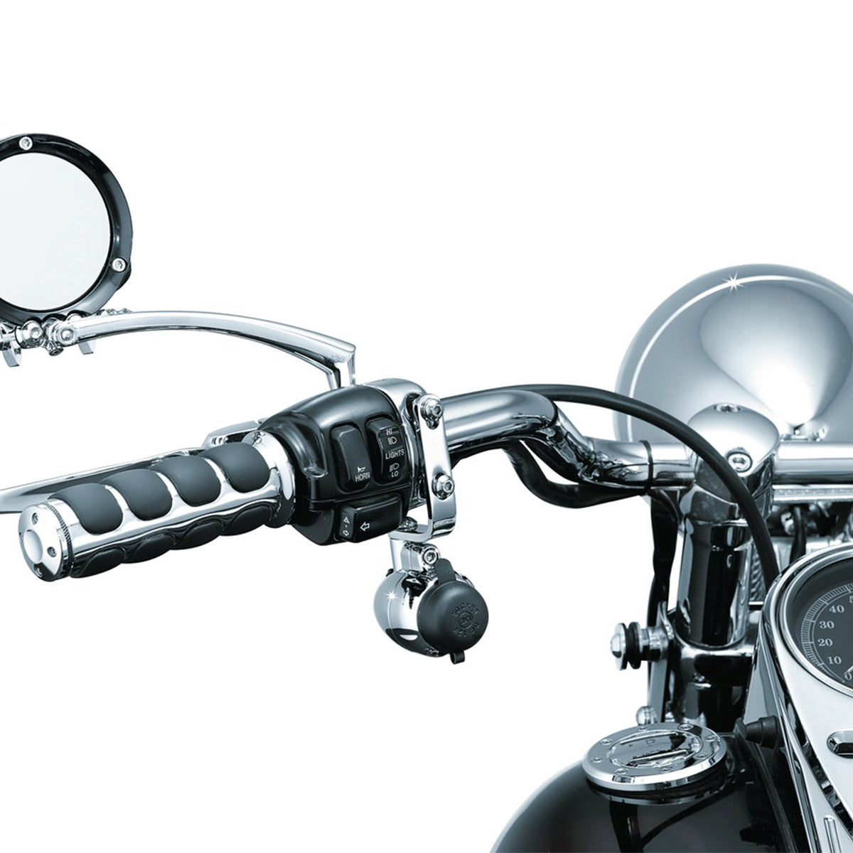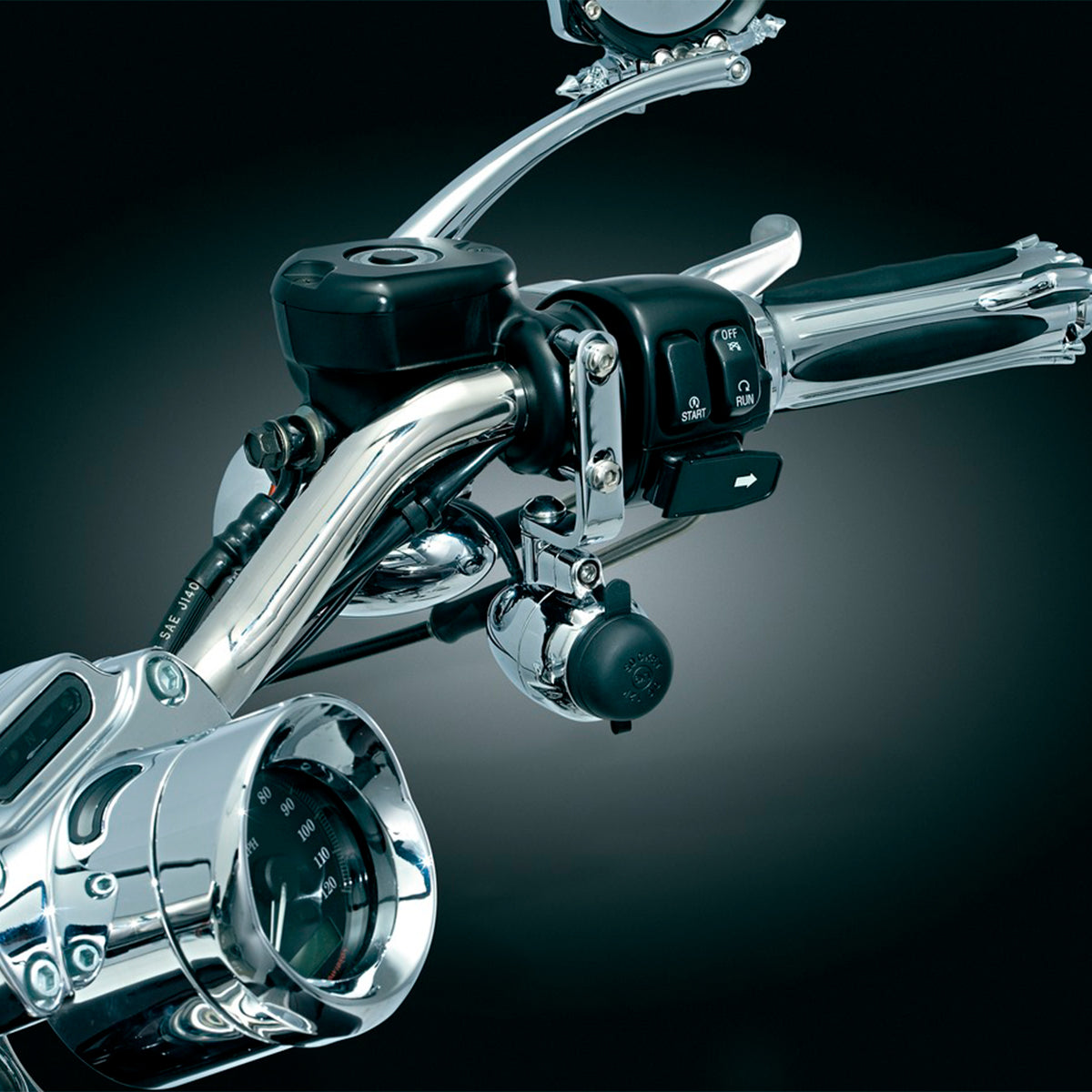 Mantenga su teléfono celular, GPS, bomba de aire o cualquier otro dispositivo eléctrico cargado mientras viaja. Integrado en nuestra carcasa de luz Silver Bullet, viene con un encendedor de cigarrillos y todo lo que necesita para conectarse directamente a su batería con una desconexión rápida. Colóquelo sobre el manubrio o revise el espacio del tanque y móntelo debajo.