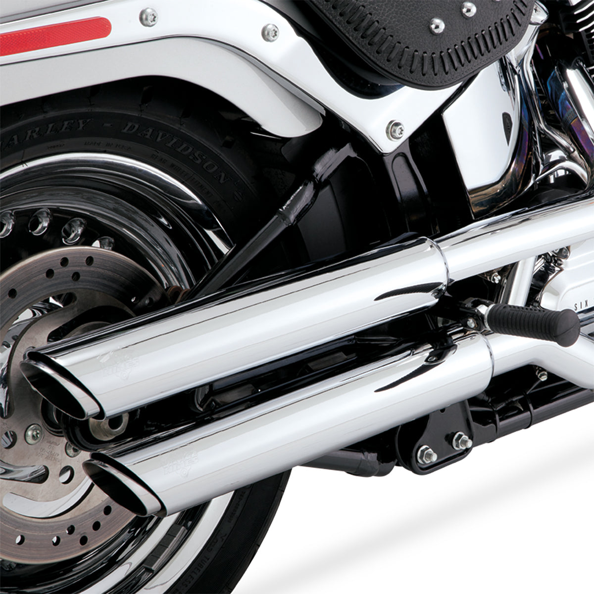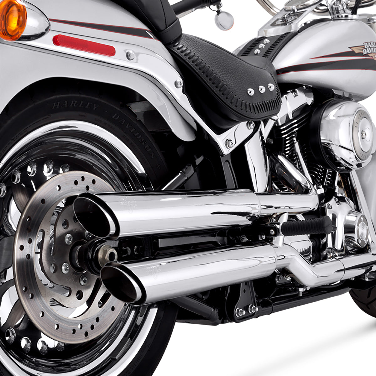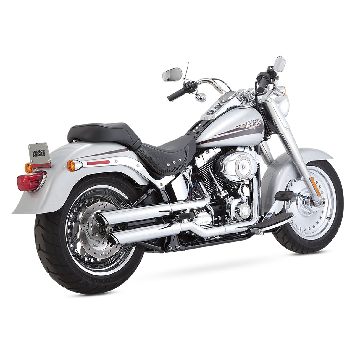 Escape Vance & Hines Twin Slash 3″ Slip Ons Cromo para Harley Davidson Softail '07-'17 Fat Boy (Colas)