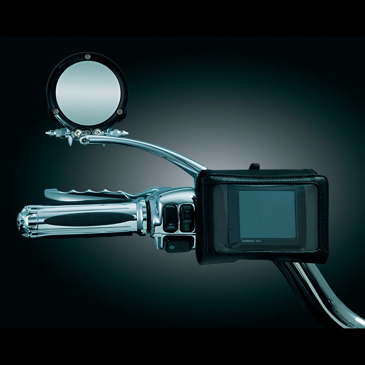 Mantener el uso completo de los dispositivos de pantalla táctil. Se monta a través de Accesorios de montaje Tech-Connect o en barras de medición 3/4" a 1-3/4" con correa de goma de desconexión rápida incluida.