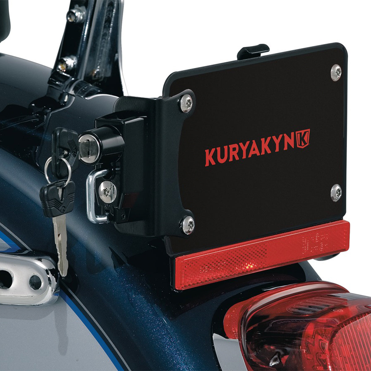 Agregue este candado de casco de portaplaca y bloquee convenientemente su casco a su motocicleta. La pequeña placa de montaje simple se atornilla fácilmente a la parte posterior de casi cualquier motocicleta y permite el acceso más fácil para asegurar su casco. Orificios de montaje diseñados para placas estándar de 4" x 7". No se instalará con marcos de matrícula curvos.