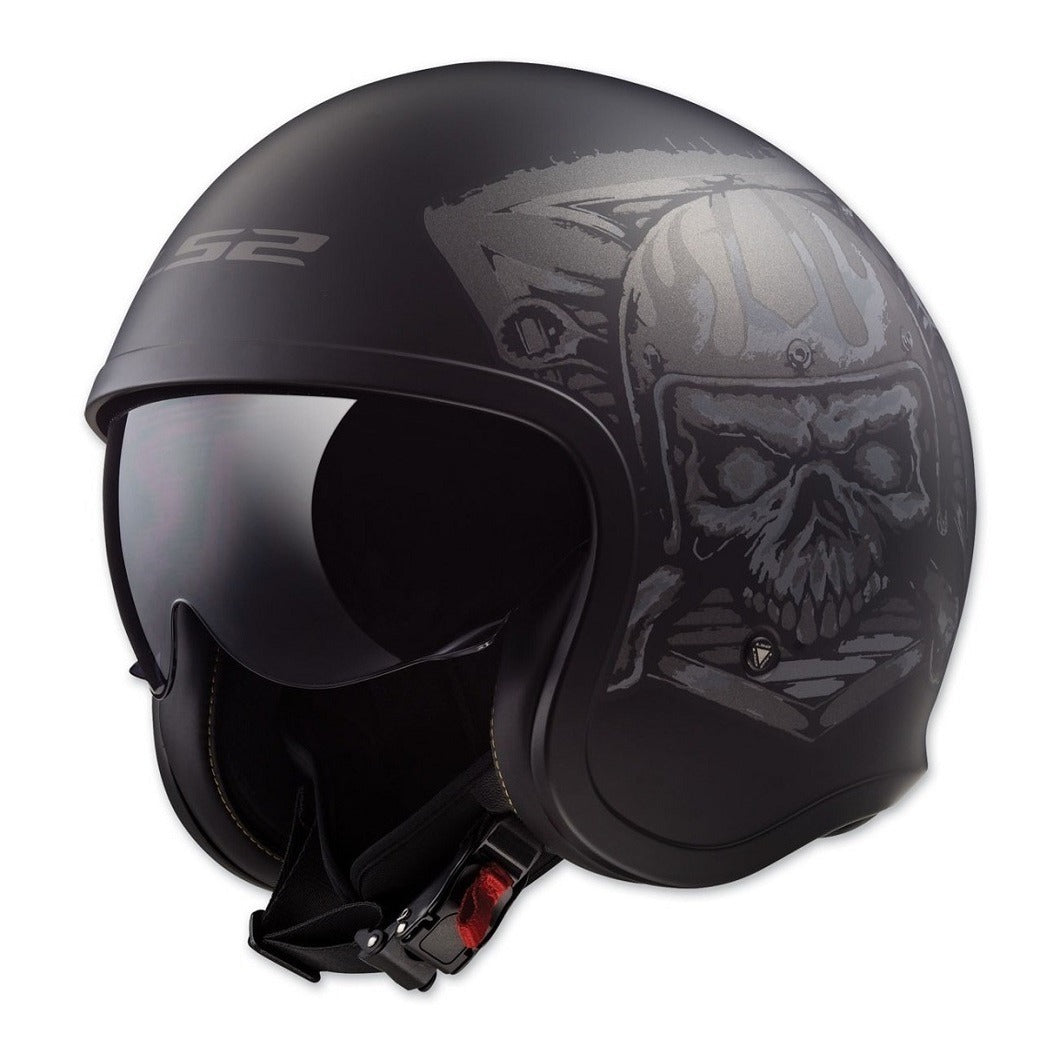 Casco Abierto LS2 Spitfire Skull Rider Negro Mate OF599
