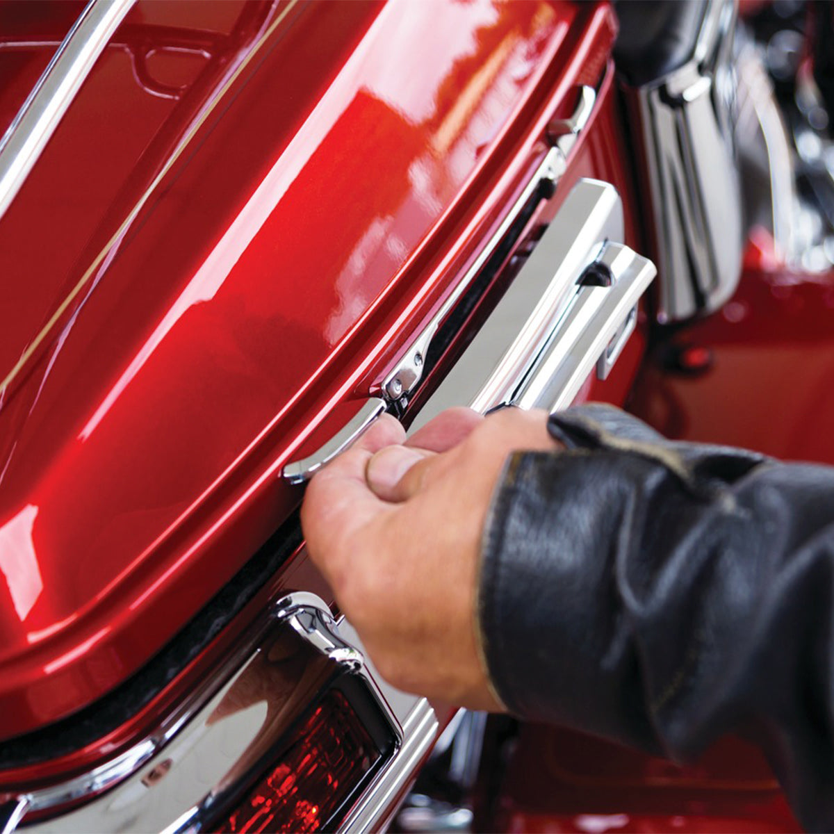 El agarre compacto y elegante Tour-Pak Lid Grip proporciona un punto de elevación conveniente para agarrar al abrir la tapa. Proteja la pintura y evite el desgaste con este agarre elegante y discreto que se adhiere a la tapa del Tour-Pak y al mecanismo de cierre de los Tour-Paks '14 y posteriores, y al perno del mecanismo de bloqueo dentro de las tapas Tour-Pak '06 -'13 . Un ascensor es todo lo que se necesita para sentir la diferencia.