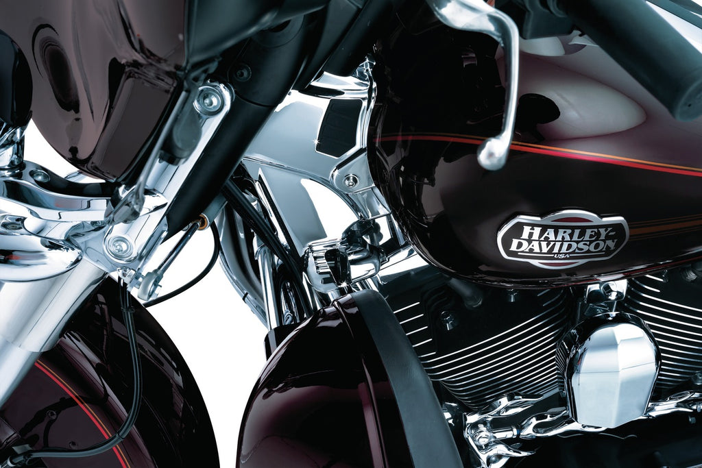 • El toque perfecto de estilo y funcionalidad. Oculte las soldaduras y los cables en un paso rápido y sencillo. Los kits de cubierta de cuello Kuryakyn