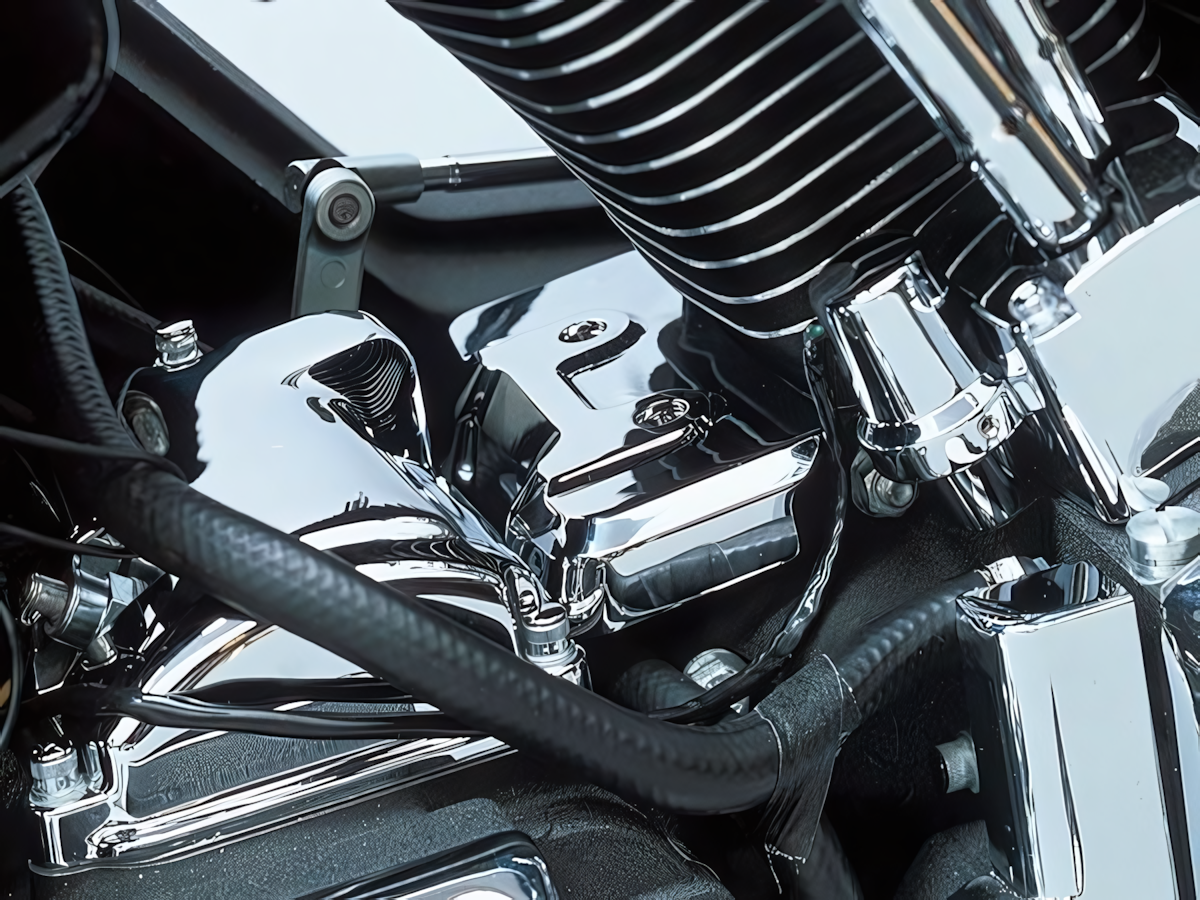 Esa área lisa detrás del cilindro trasero necesitaba algo, por lo que Kuryakyn diseñó una elegante fundición a presión es similar al aspecto de la parte superior de las cubiertas de balancines para encajar en ella
