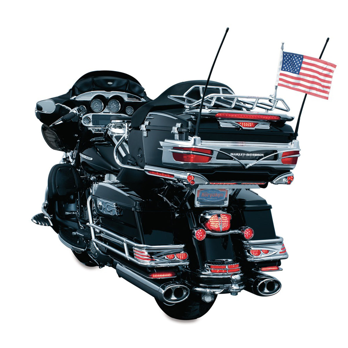 Harley-Davidson: Finales ’00 -’13 Electra Glides, Road Glides, Road Kings y Street Glides (incluidos los modelos ’09 -’13 CVO) con Tour-Pak montado rígido y ’97 -’13 Electra Glides, Road Glides, Road Kings y Street Glides con racks desmontables Tour-Pak HD de dos o más (N / P 53276-04, 53260-02, 53276-09A, 53260-09A, 53246-09A) y King, Chopped o Razor-Pak Tour-Pak