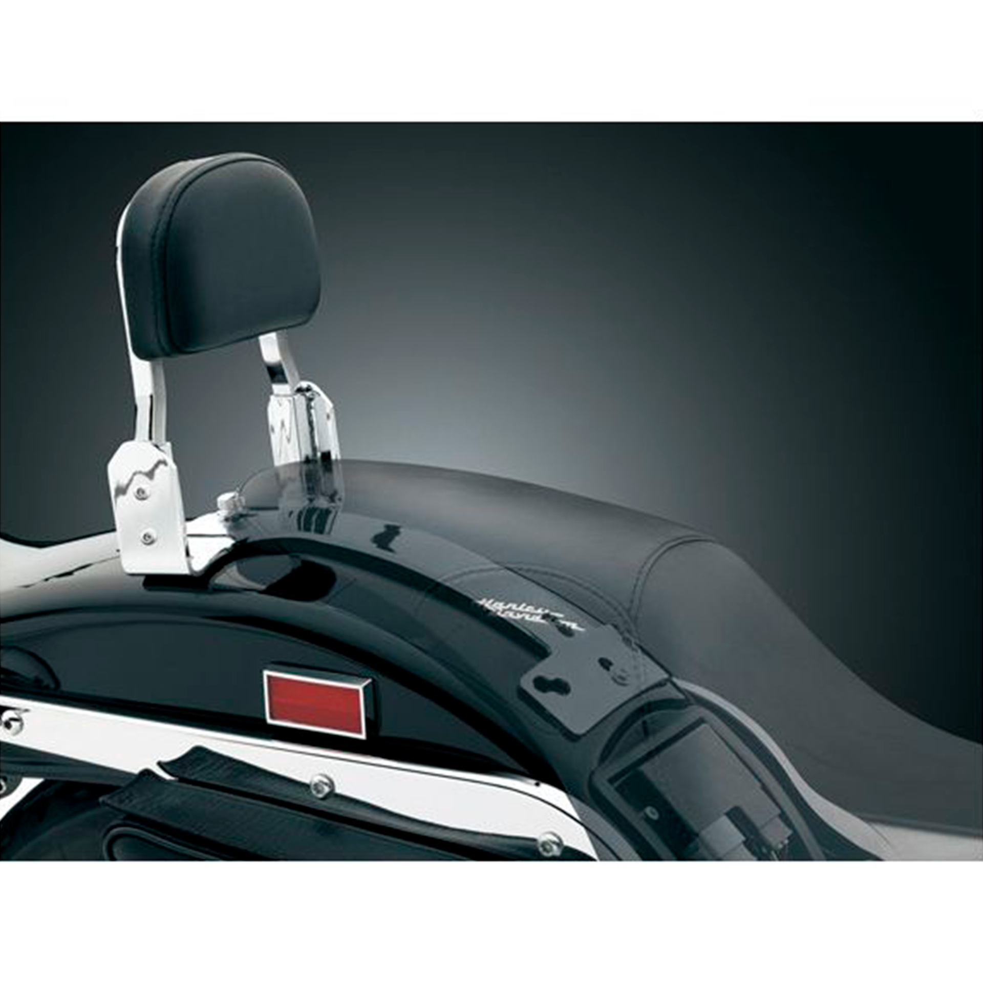 Aquí está la solución fácil para el conductor que lleva un pasajero pero no le gusta el aspecto de las placas laterales convencionales. El soporte se atornilla al guardabarros trasero debajo del asiento del pasajero. Acepta la barra Sissy y la almohadilla del respaldo Kuryakyn Plug & Play para comodidad y conveniencia del pasajero.