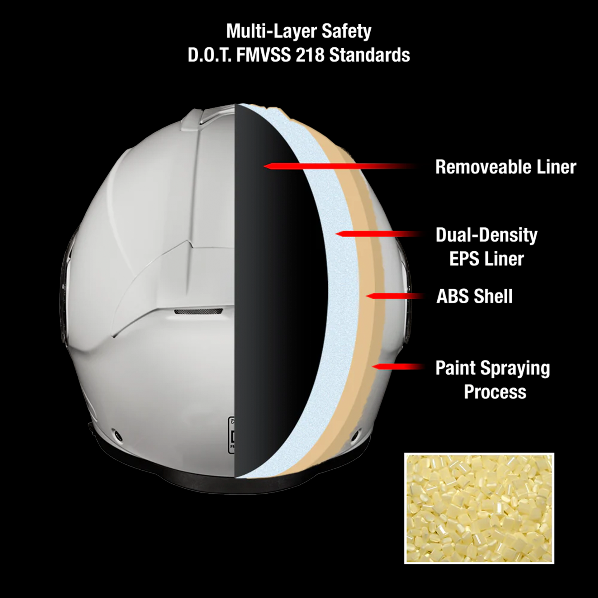 Casco aprobado por el DOT: descubra lo último en seguridad y estilo con este casco de abatible. Ostenta con orgullo el título de ser el casco integral más pequeño jamás fabricado, aprobado por el DOT. Su seguridad es nuestra prioridad y nuestro casco de motocicleta no solo cumple sino que supera los estrictos estándares de seguridad DOT FMVSS 218.