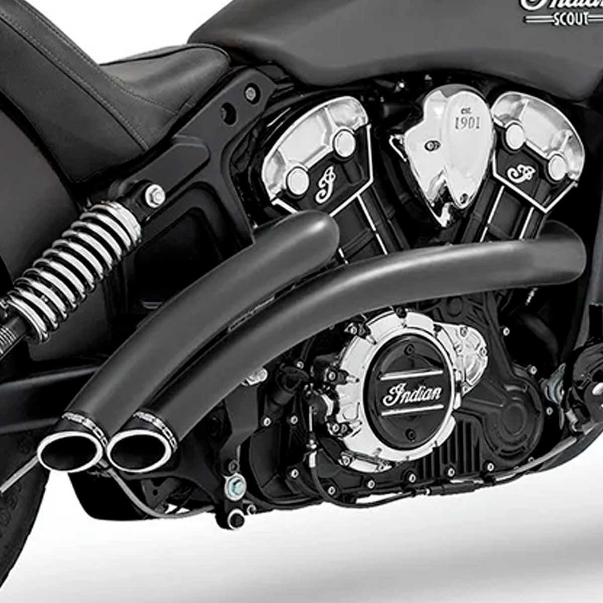 Sistema de escape para motocicletas Indian Scout con un rendimiento exclusivo para potencia máxima y mayor torque.