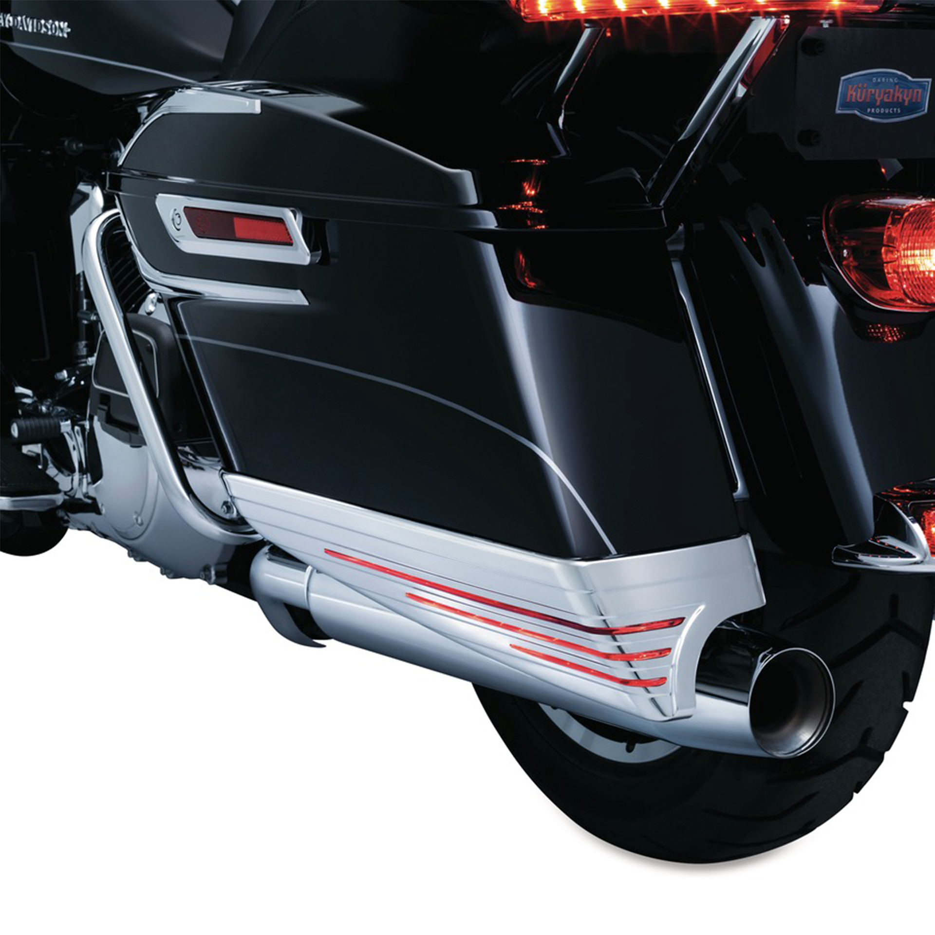¿Qué es mejor que el aspecto de las alforjas extendidas? Alforjas extendidas con luces auxiliares envolventes incorporadas. Kuryakyn L.E.D. Las extensiones de alforjas para los modelos ’14 y posteriores proporcionan la funcionalidad Run, Turn & Brake (los modelos Road King ’14 y posteriores sólo admiten las funciones Run y Turn). La versión ’93 -’13 proporciona la funcionalidad Run and Turn para todas las aplicaciones. Disponible en cromo con lentes rojos o negro brillante con lentes ahumados, estas extensiones de alforjas se atornillan de forma segura y cuentan con cableado plug-n-play para facilitar la instalación. La versión Gloss Black se puede pintar fácilmente con una preparación mínima. El borde inferior curvo hacia adentro brinda este estilo único al tiempo que reduce la interferencia en las curvas que a menudo se ve con otras extensiones de alforjas.