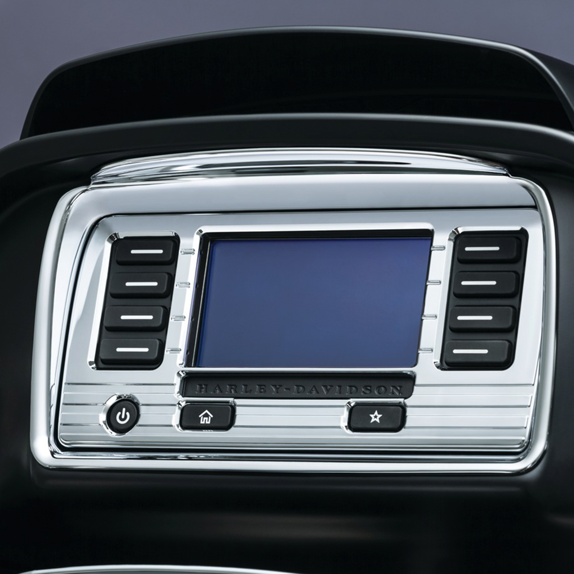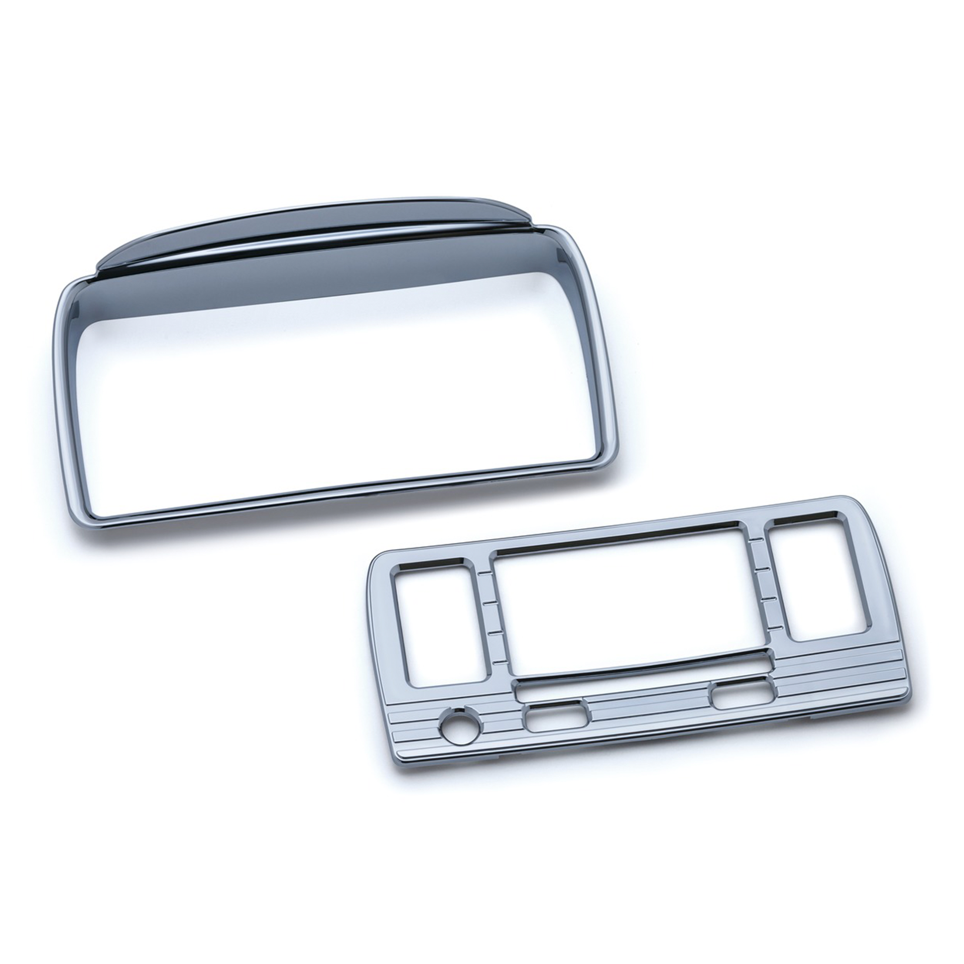 ¡Da vida al área que rodea a Harley-Davidson Road Glide BOOM! Sistemas de infoentretenimiento Box 4.3 y 6.5GT con los elegantes y estilizados covers Tri-Line de Kuryakyn. El sistema 6.5GT solo acepta el marco exterior, mientras que el sistema de infoentretenimiento 4.3 también utiliza el marco y deja espacio para la placa frontal interna para completar el efecto Tri-Line completo. La instalación es muy fácil con el adhesivo 3M® VHB ™ de alta resistencia.